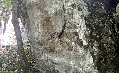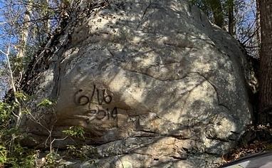 The Beatdown/Amp Cluster is now the last cluster on your left as you hike down the road (with the Heart Boulder hiding to the right of the trail JUST before the first turnoff for the Amp Boulder), just a couple minutes past the social trail for the Flakey/Mini Flakey Boulders, with the Hollywood Boulder bringing up the rear on your left, easily visible from the trail over a creek bed.