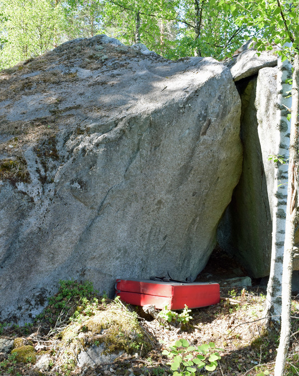 Crouching start or sit start from the cave. Use both of the blocks.