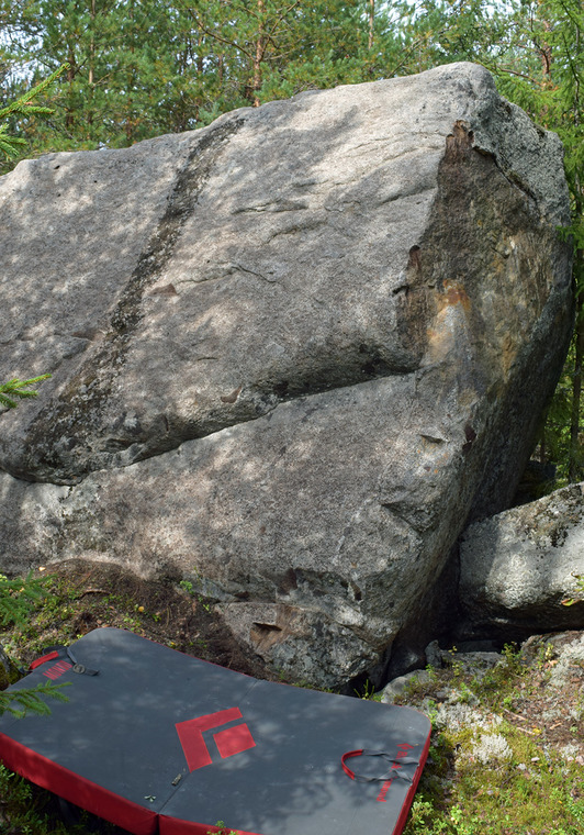 Stand start. Do not use the right arete or go left over moss.
