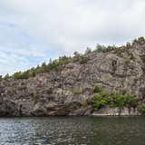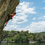 Three smaller sectors of varying character scattered along a quite large hillside. The area is perhaps not the most visited in Stockholm, but sector Röda väggen has some quite okay overhanging routes in grades that fit many and should be suitable for a shorter stay. Sector Sjöväggen is the coolest sector and it should be interesting if you want to hang on some harder routes in a very spectacular and exposed environment up on a big ledge with a fantastic view out over the sea. All sectors are no more than 7-12 meters high. The parking opportunities are great and it only takes 15 minutes to drive from Södermalm. Another plus is the short but very nice walk to the crag in the beautiful nature. The bolting is perfectly okay but some routes only have just one bolt as an anchor. Bring a brush as some routes may be a little mossy on top.