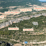 the left-hand section of the zone is pretty much one continuous cliff with sectors situated one after the other, with hardly any breaks. The sectors in this group are, from left to right: Tempura, Bombo Suís, Ànima Negra, La Cara de La Mort, Cavall de Troia, L’Obsessió de Tibar and Lolo Decotón.