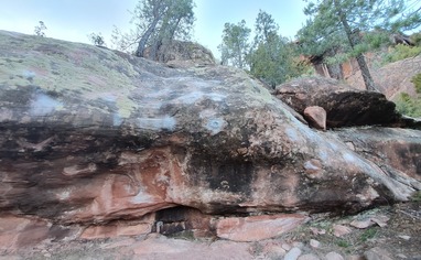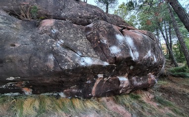 Park at Mirador and take the recorded GPS track up the hill. The boulders are down on the steep face.