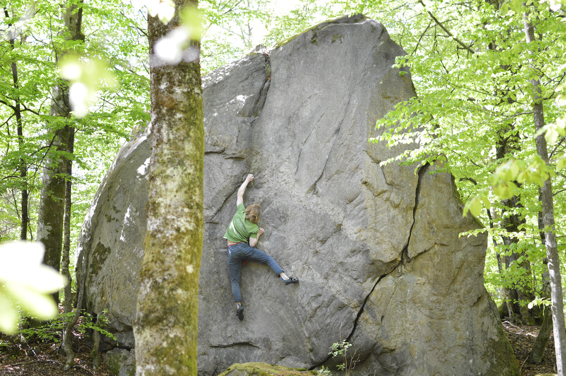 Both of the main sectors (The Big Roof & Wallstreet) are located in the midst of a calm forest, where you'll most certainly find yourself alone with the trees. You have to walk a little way on a small trail to get to the blocs, however the boulders are most definitely worth the hike! The majority of the climbs have good landings except for one line in the roof and some in the sector "Den ovisses sten"; this last sector is roadside so it's easy bring lots of pads.