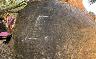 Rock ART: The "Riders of the Stone" boulder has rock art, DO NOT climb the problems somebody has put up around the drawings. The boulders are drawn on the topo, but they are there to remind that these lines are out of bounds.