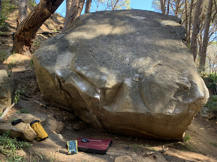 The new sit to the original Himura line. Start low on two opposing good sidepulls. Move right to sharp sloper, big move up to slopey sidepull/pinch, LH to small 2 finger pocket and finish left as Himura.