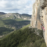 The excellent rock changes from vertical to slightly overhanging to extremely overhanging. During winter time the sun arrives around 11h, making it a perfect choice for cold days. In summer time the sun reaches the wall at 2pm. So an ideal choice for morning sessions during hot summer days. To avoid on days with Mistral winds.