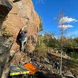 The old Tockarp quarry with a mix of high balls and smaller walls ranging from overhang to face and slap.