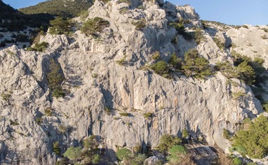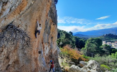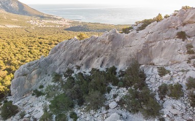 A few sectors with short routes (7-15m) on sharp rock. Facing mostly East.