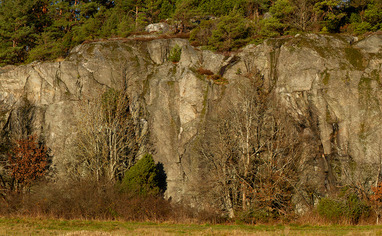 From the parking lot follow Domarringsgatan to the right and after about 100 m turn loft onto Lottkärrsvägen. Follow it and then walking paths till you see the crag slightly to your right. Follow the field adge to the crag.