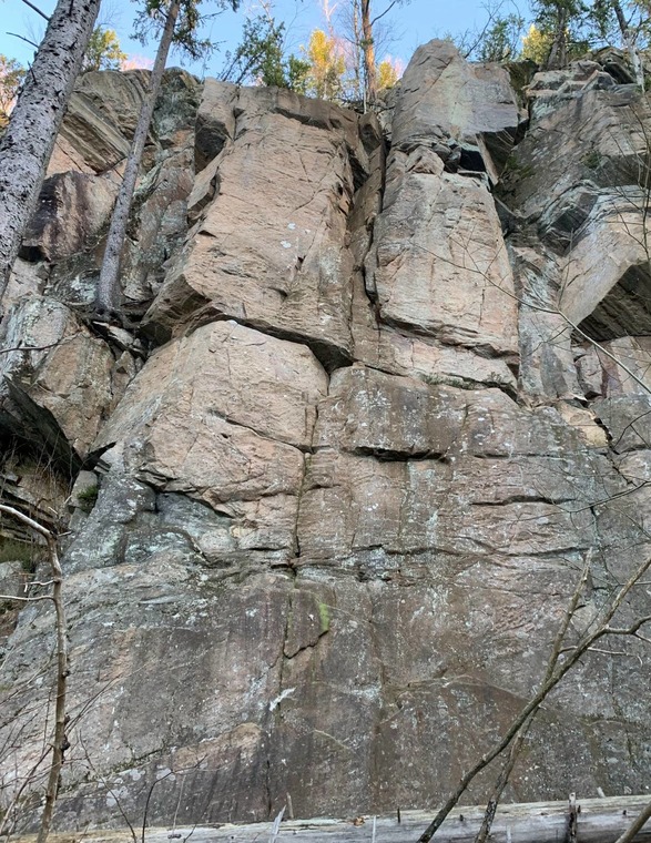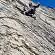 Significant crux in the middle. Easiest to go left of the last hanger to get up to the anchor. If you climb the original way to the right of the last hanger it will be a little bit harder (and more fun) up to the anchor. Chain anchor with 1 carabiner (2021, Borås KK)