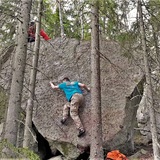Urkka is a nice compact crag of 2 boulders side by side. The boulders are shaded by trees, but they are on top of a little windy hill, so they dry relatively quickly. That makes them a good spot for spring and autumn sessions, but it works in the summer as well, due to the shades.