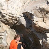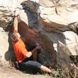 The rock is poorly compressed sandstone with some quartz fractions (gritstone). There are numerous simple boulder problems up to V10 (7C+) and several projects that await first ascents.