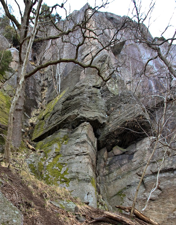 Sprickan som leder upp till Tobleronehyllan, några meter vänster om Toblerone.