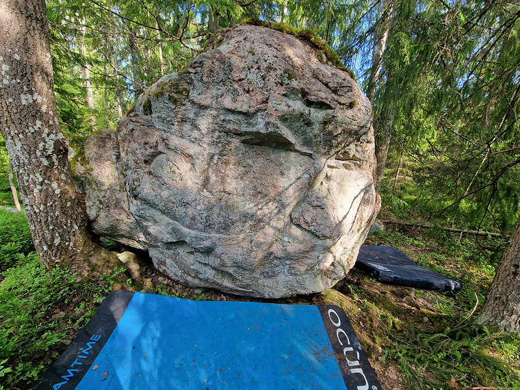 Stand start. Left hand on the top arete and right on the sloper. Sketchy top out.