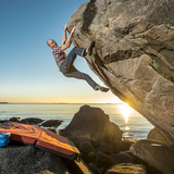 This beautiful boulder, perched on the rocky beach along the 815 road, offers some nice problems. In some cases the rock is a little sketchy, beware! In most case though the rock is excellent with good friction without being too sharp.