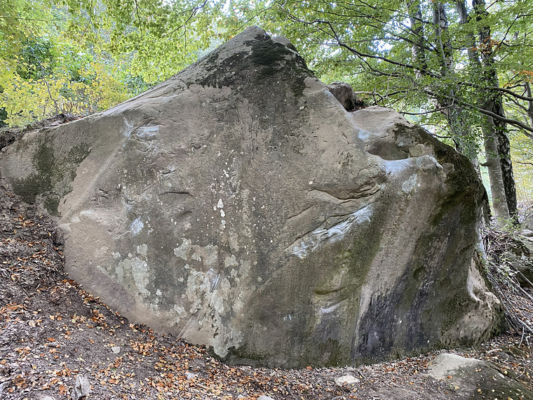 Start on crimps in the overhang. Some climbers find this boulder very difficult, while others float on it.