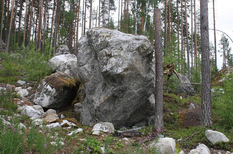 Rivig sten. Finns 1-2 problem till på denna stenen, speciellt om det nedhuggna trädet blir nedhugget hela vägen till marken.