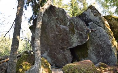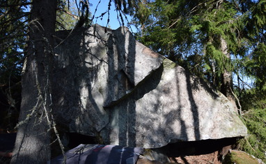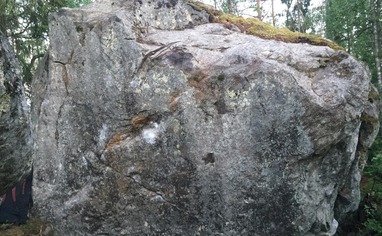 Lyhyin linja tieltä kiville oli nyt todella tiheää ja soista. Mutta pienellä kierrolla pääsi hyvin kamojenki kanssa. Kivi on laadukasta ja alue tiivis.