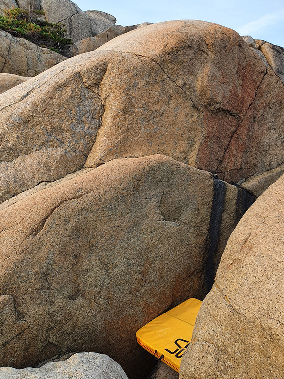 Start established on the good crimp edge. Tops standing up straight on the ledge. Walk down left.