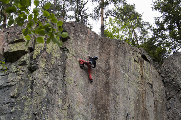 Mustalaisvuori in Viitapohja is one of the most popular crags in Tampere region. It offers varied climbing at all grades in a beautiful setting. The testpieces are Sormenleikkaaja (6a), Sicamiehiä (6b), Hui Lai Lee (7a) and Missä pultti? (7b).