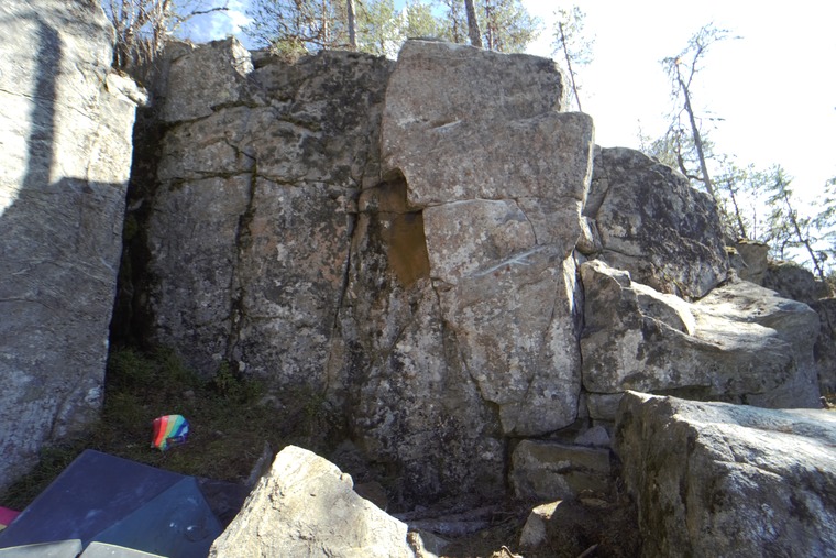 Highball. Start with both hands on big edge (Starting holds marked as of 2020-05-09) straight up. Left and right arete excluded. Bring pads!