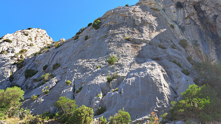 the topo is labelled wrong, it is written the name on the rock and starts to the left of the big bush you climb past