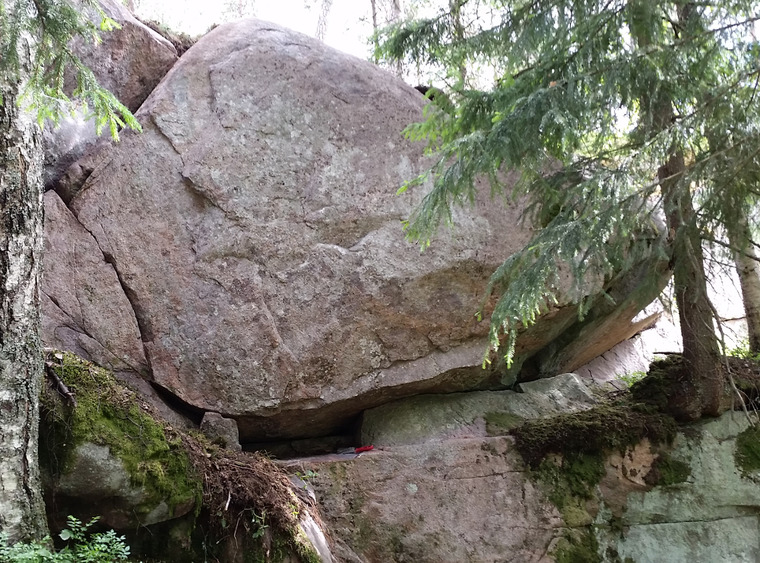 Begins either sit or low start with both hands on crag. Goes directly up without the left arete. Attention! The landing is a bit scetchy.