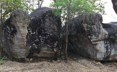 From Amnat Charoen (south) or Mukdahan (north), drive towards Nikhom Kham Soi. The road heading to Phu Lom Khum (road no 3022) heads west about 3 km south of Nikhom. Follow this road for 9 km until you see the mountain on your left. Drive up the mountain following either the older road / keeping left until you see the boulders right in front of you.