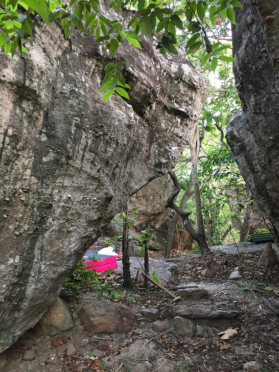 Included only for historic reasons. The monks decided this boulder needs to be graced with a beautiful concrete wall and turned into an outdoor toilet, which is a pity because I had been trying the sit for two years already and gotten close the season prior.
