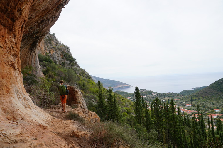 Well, here's the only downside, the old water mill, which gives the crag its name, is also the main source of fresh water for Kyparissi and with that comes mosquitoes during the warmer months. So when the sun starts to dip, be sure to bring some insect repellent!