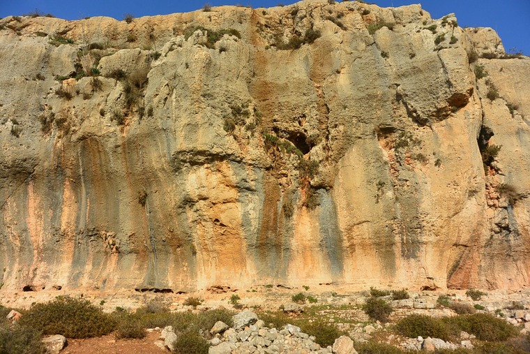 This shares the first bolt with "Sahalia (Lizard)." Campus up big jugs then traverse right. Big moves and small holds are the name of the game! 6 bolts + anchors.