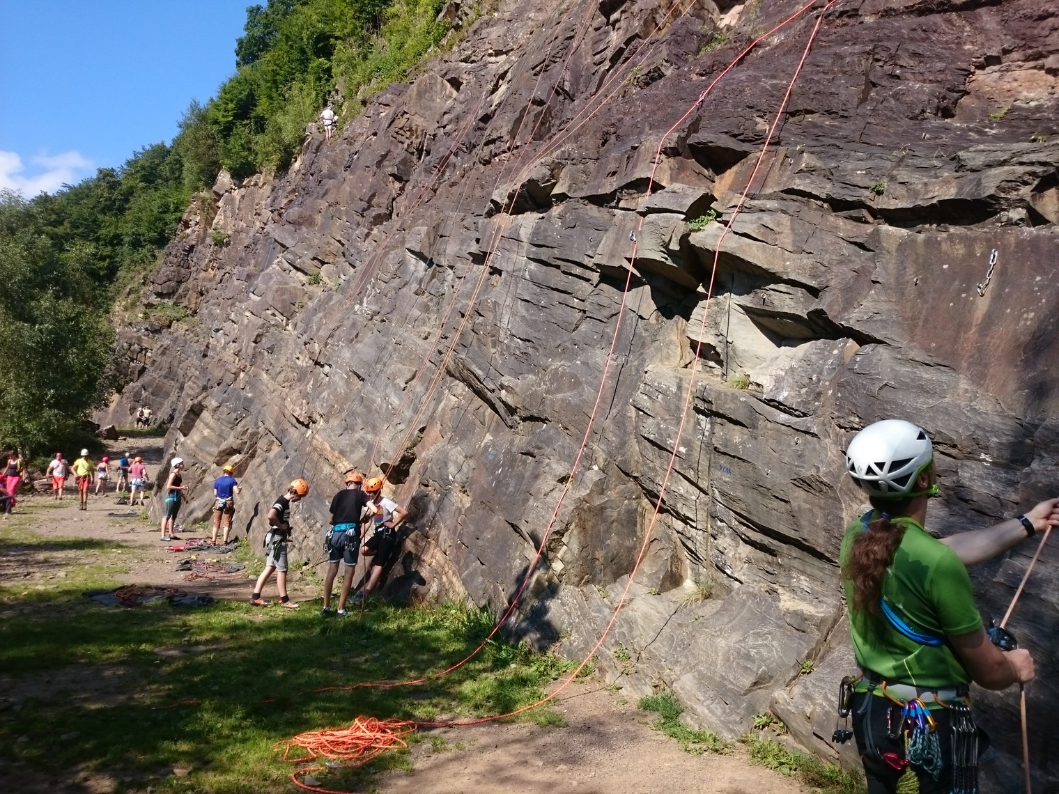 The person to the far right is belaying on "'t Is de mijnen"