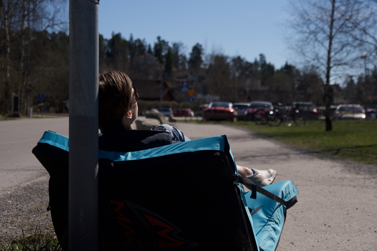 Filip waiting for a ride to the crag