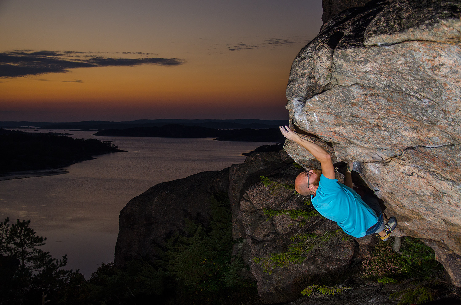 Jocke doing the nasty dyno and gets the FA on this steep project at SolClint Eastwood, Tjörn, Sweden.