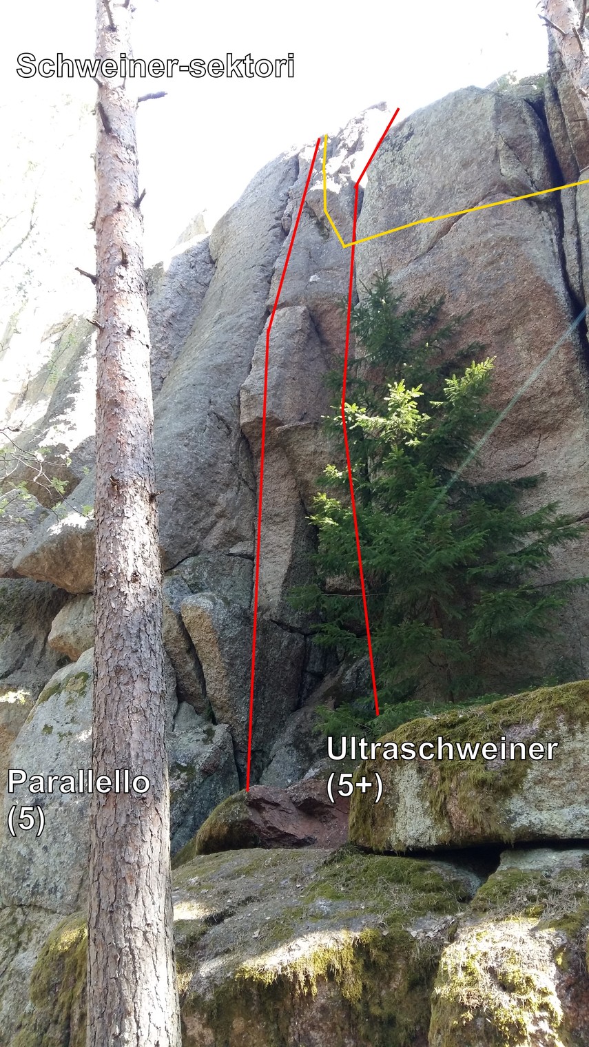 Schweiner-sektori: Parallello (5), Ultraschweiner (5+) ja Filmi-poikki-kulku (6) Parallellon toppiin