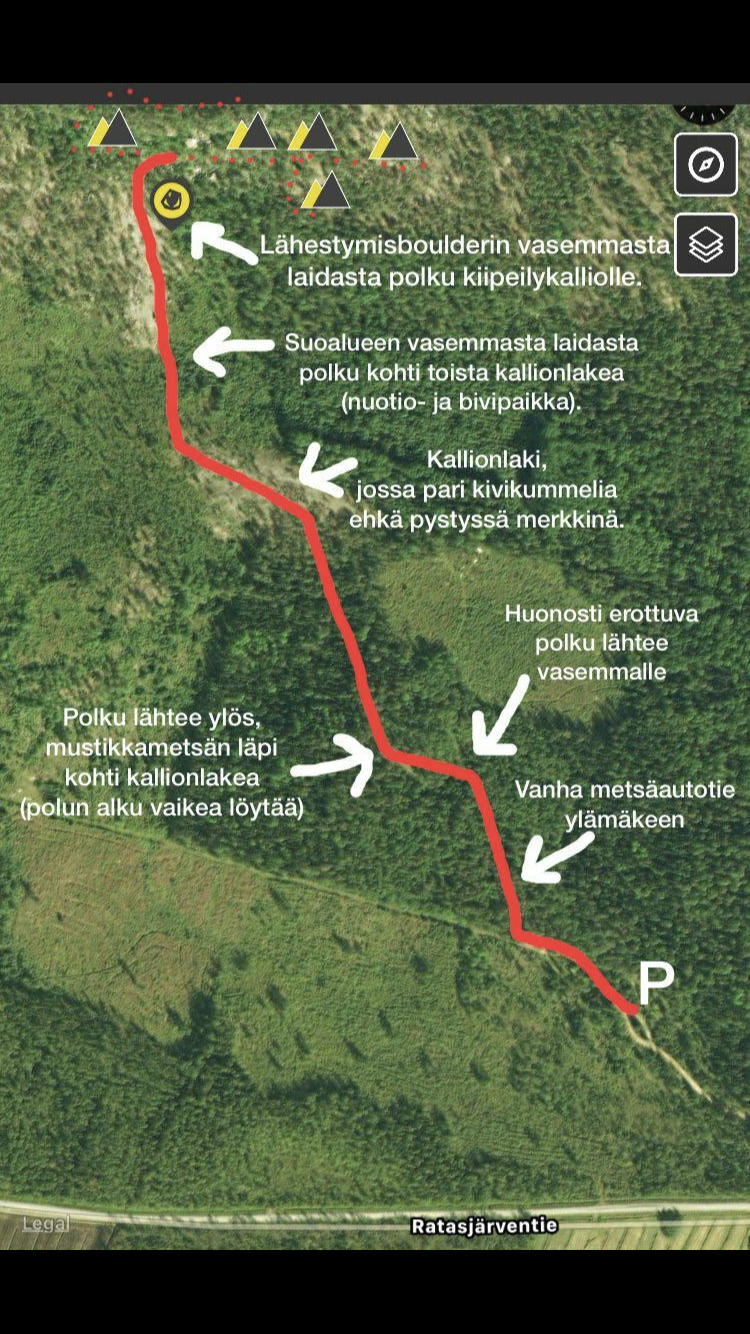 Kartta parkkipaikalta kalliolle
