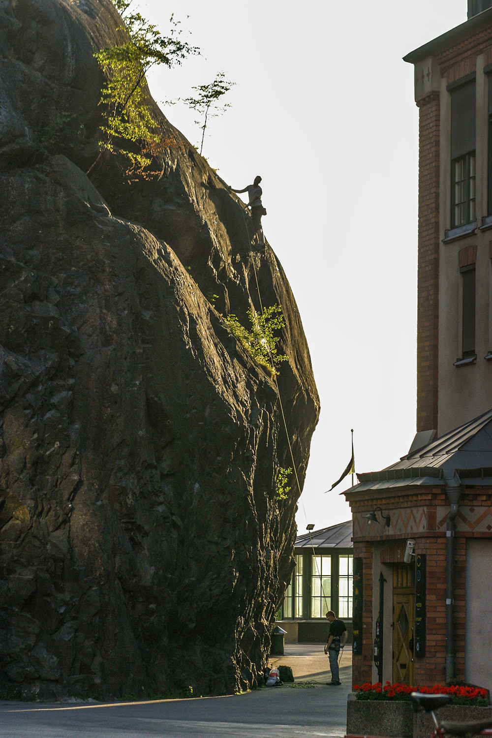 Climber on the upper wall catching the evening sun.