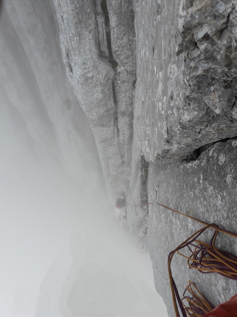 Phantom, 8, E3, Crux-pitch. Westwand, Nordgipfel Predigstuhl, Wilder Kaiser.