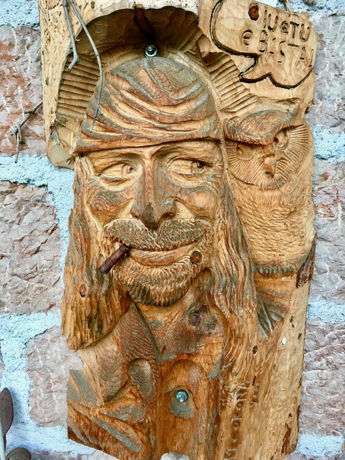 self-portrait sculpture by Mauro Corona
