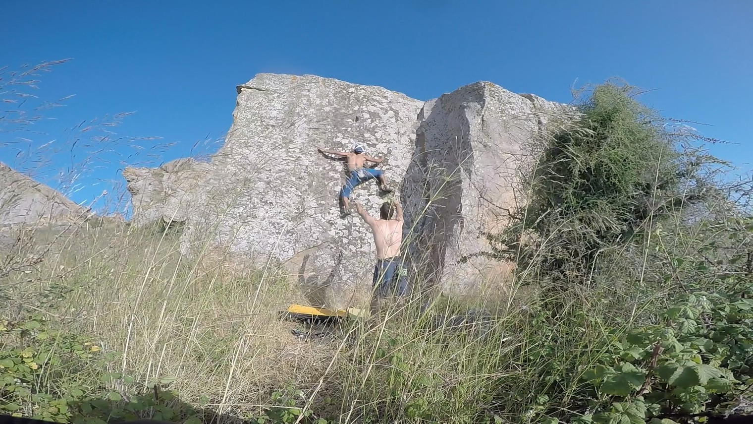 Markos attempting the dyno on "Zeimbekiko" (7A) at "To Diedro" boulder.