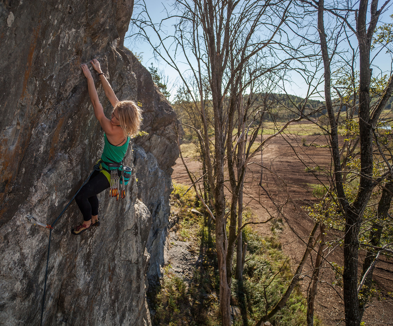 Linda Oscarsson doing Fågeljägare (7b) On-sight.