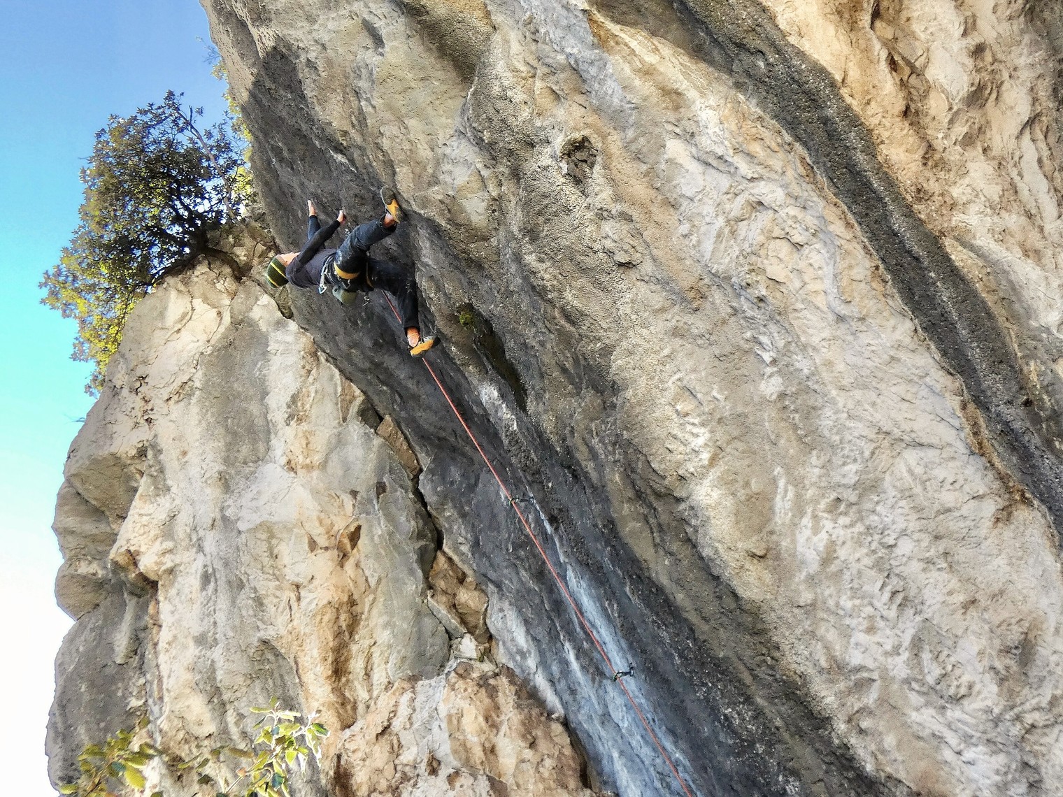 Nicola climbing the first 8a of Arco