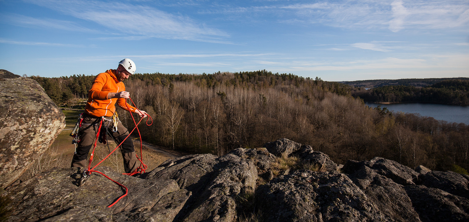 Climber who just finished Åttan (3b) at sector Långfredags-väggen.