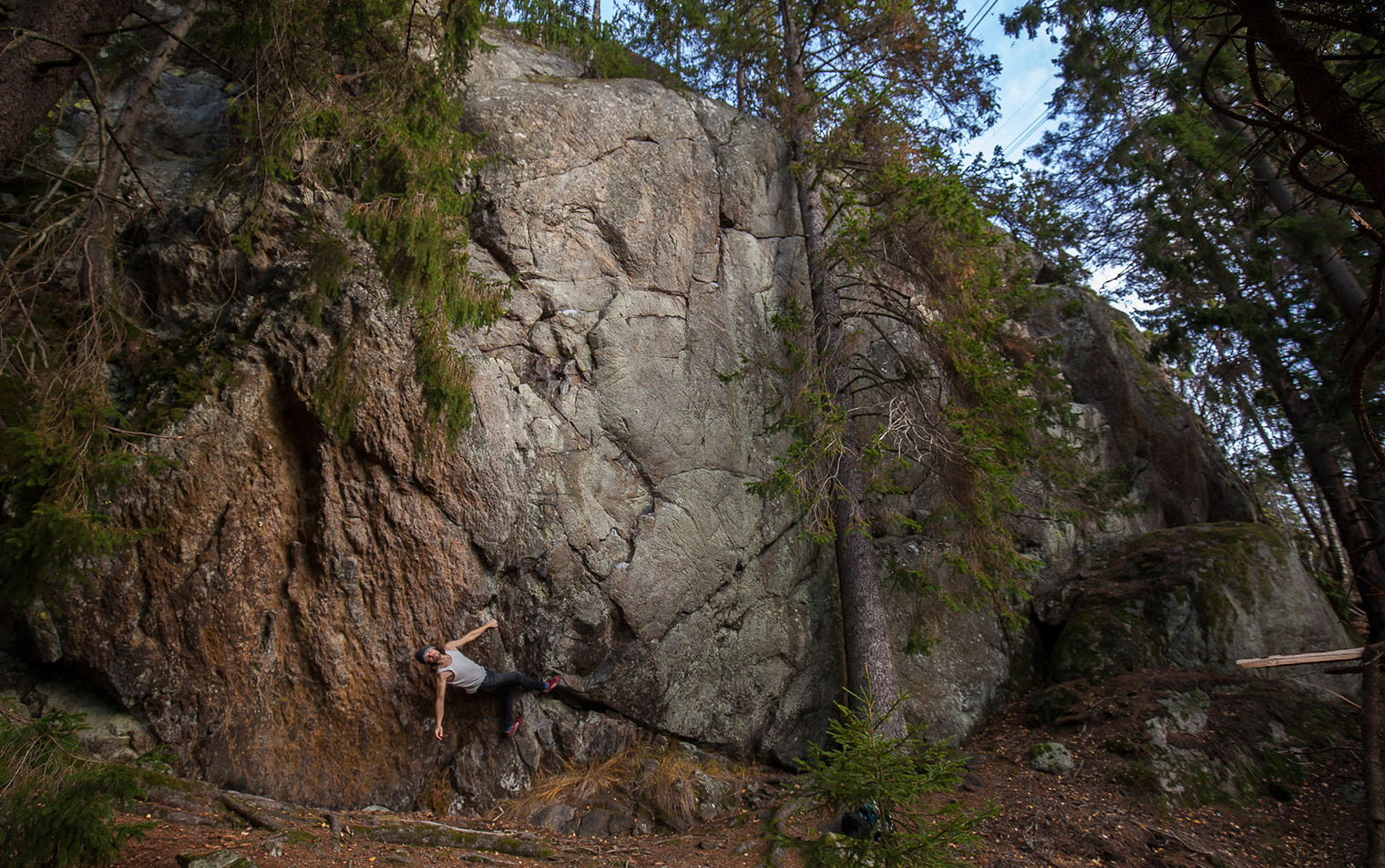 Uringeklippan with the classic route Slitvargen (6c+) just to the right of the guy in the picture.