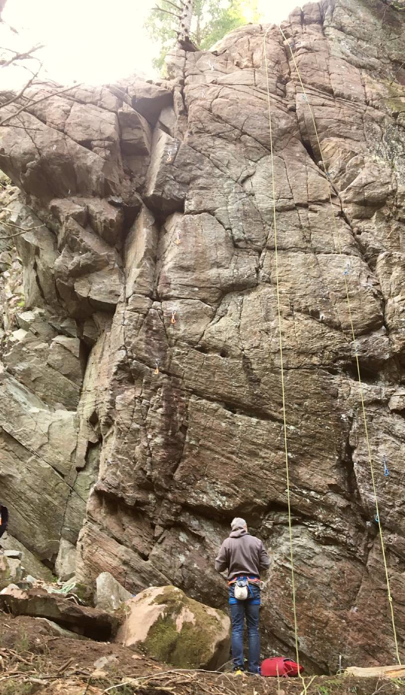 The routes "Månterapi" 7c, "En slemmig torsk" 6c, "Vill inte va med" 6c och "Bollocks" 7a+"