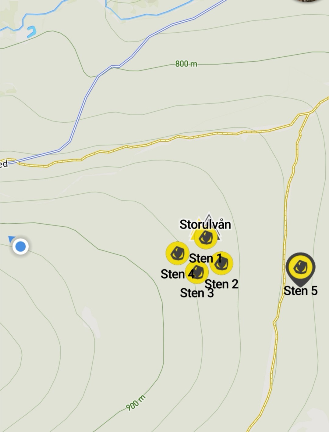 The Blue Dot Is Where The Number Five Boulder Acually Is