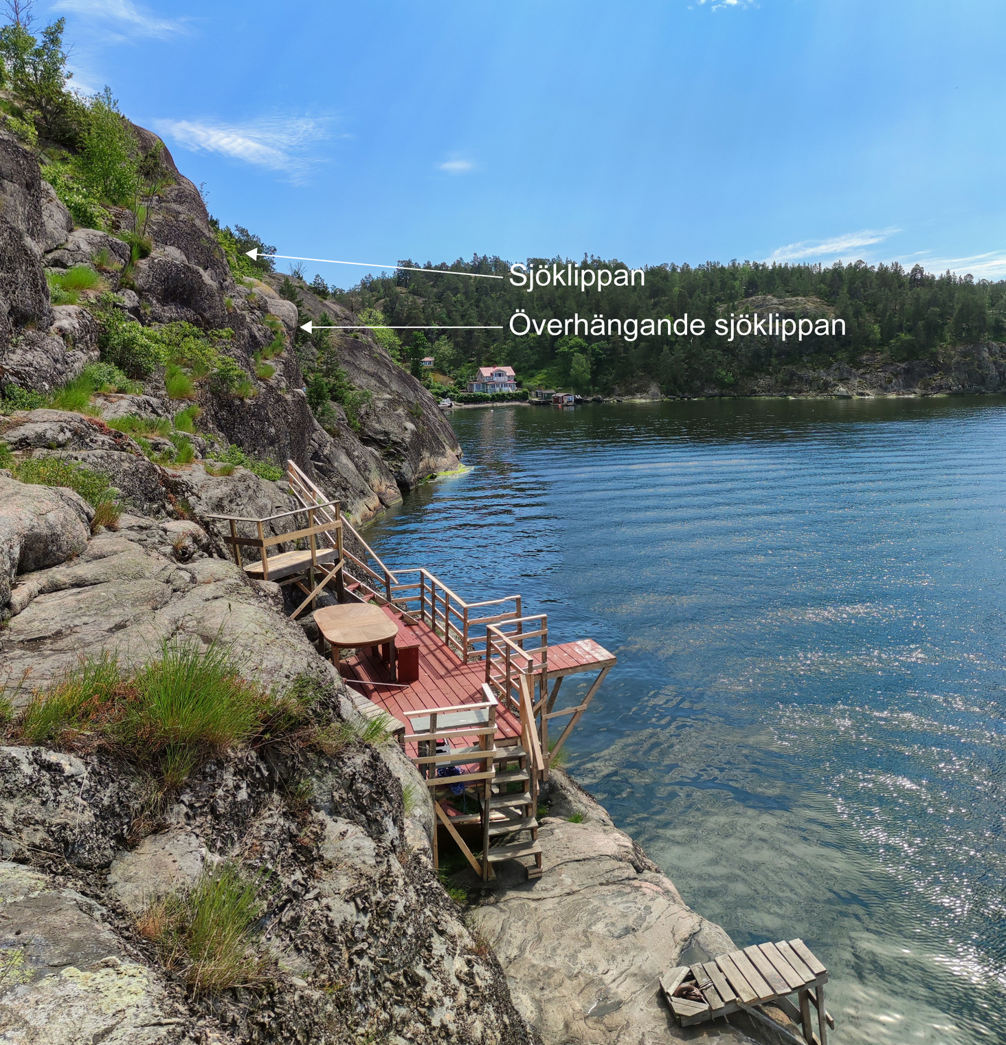 Den makalösa "allmänna" badbryggan intill Överhängande sjöklippan är numera nedmonterad av kommunen. WTF!