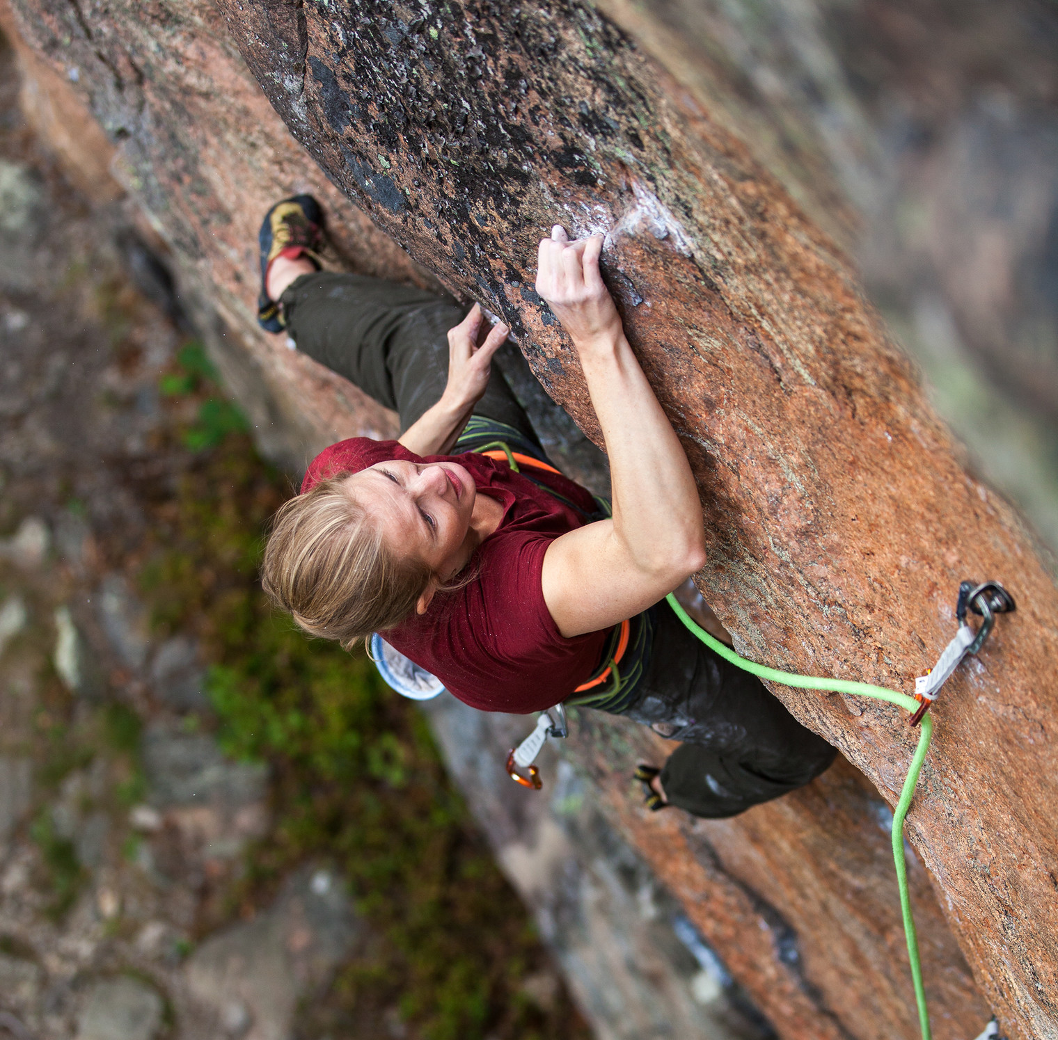 Linda Oscarsson working on Human Torch (7c+) at Sector Apocalyps.