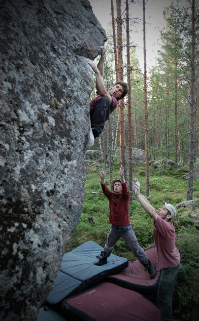 Ila Tuunainen approaching the crux jump of Kansallisongelma 7a+