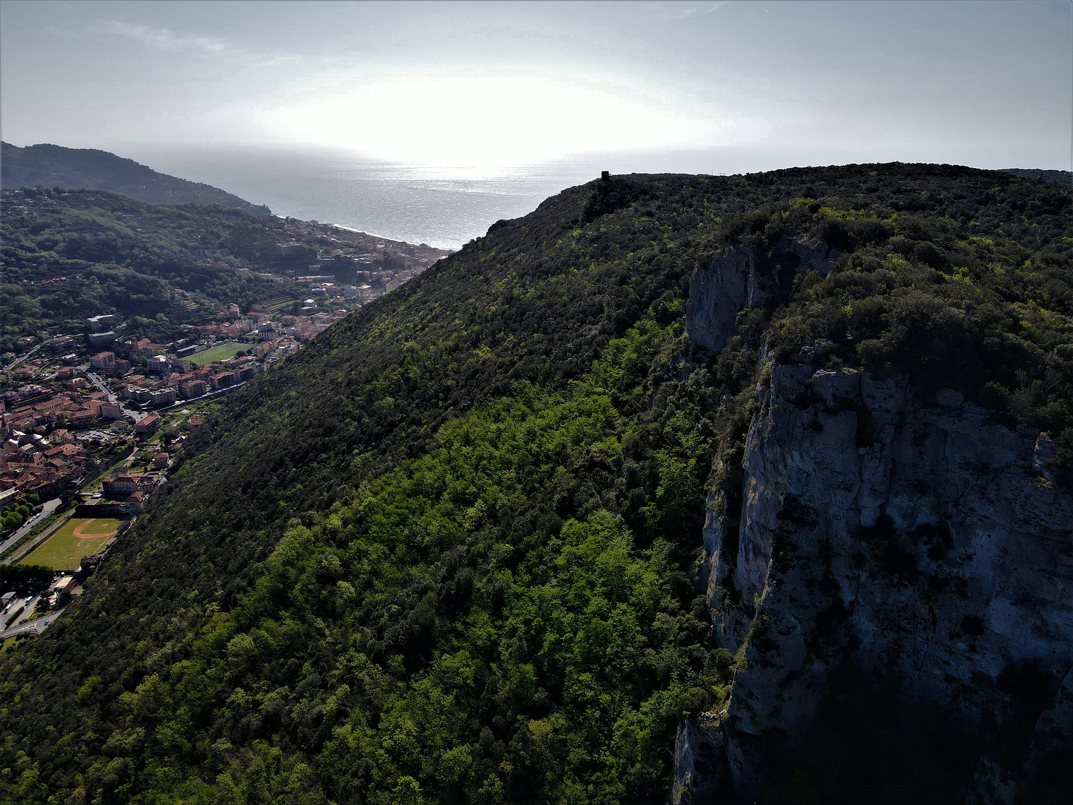 the sea and finalborgo merging in the picture taken from above the crag